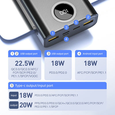Portatif Şarj Çözümü için Parlak Mavi Beyaz Renkli ABS PC ile PD 20W 22.5W Güç Bankası